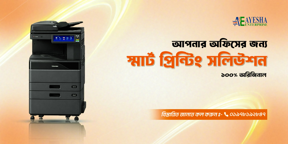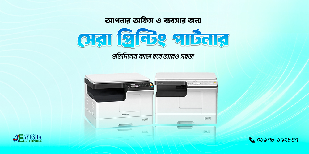 Businesses across Bangladesh trust us as a leading photocopy machine supplier and printer shop in Bangladesh. We provide reliable Toshiba photocopy machines, laser printers, ink tank printers, POS printers, and multifunction office printers for offices, businesses, and print shops.